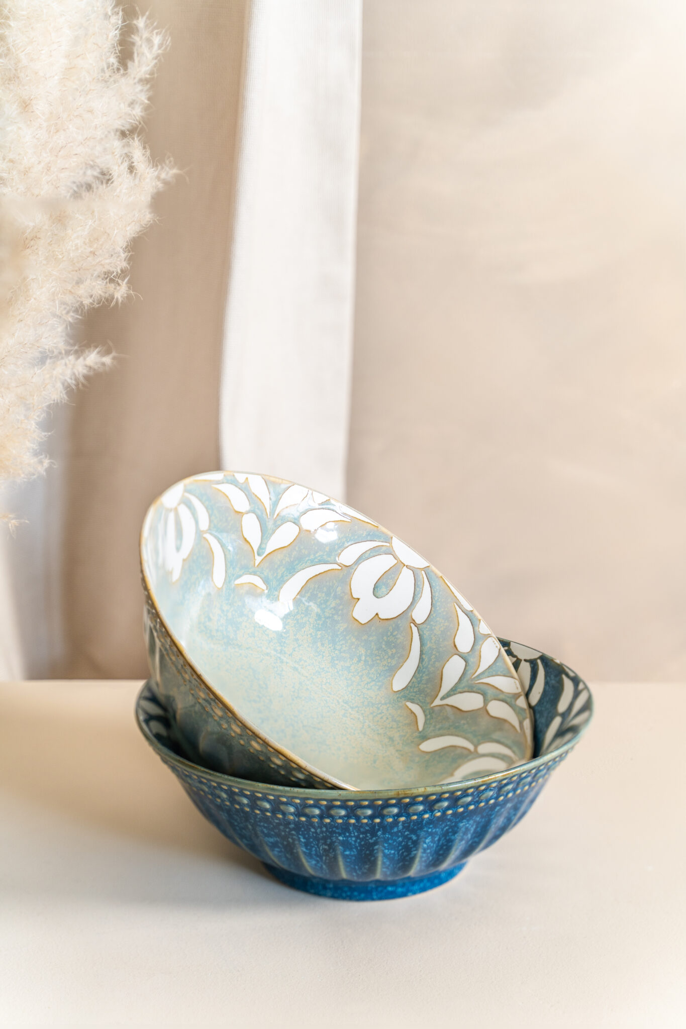 Inspirée des motifs andalous et des céramiques artisanales, cette collection en grès capture l’essence de l’art de la table méditerranéenne. Avec ses teintes de bleu profond et ses détails de couleur crème finement dessinés, chaque pièce évoque des souvenirs de voyages et de dîners inoubliables.