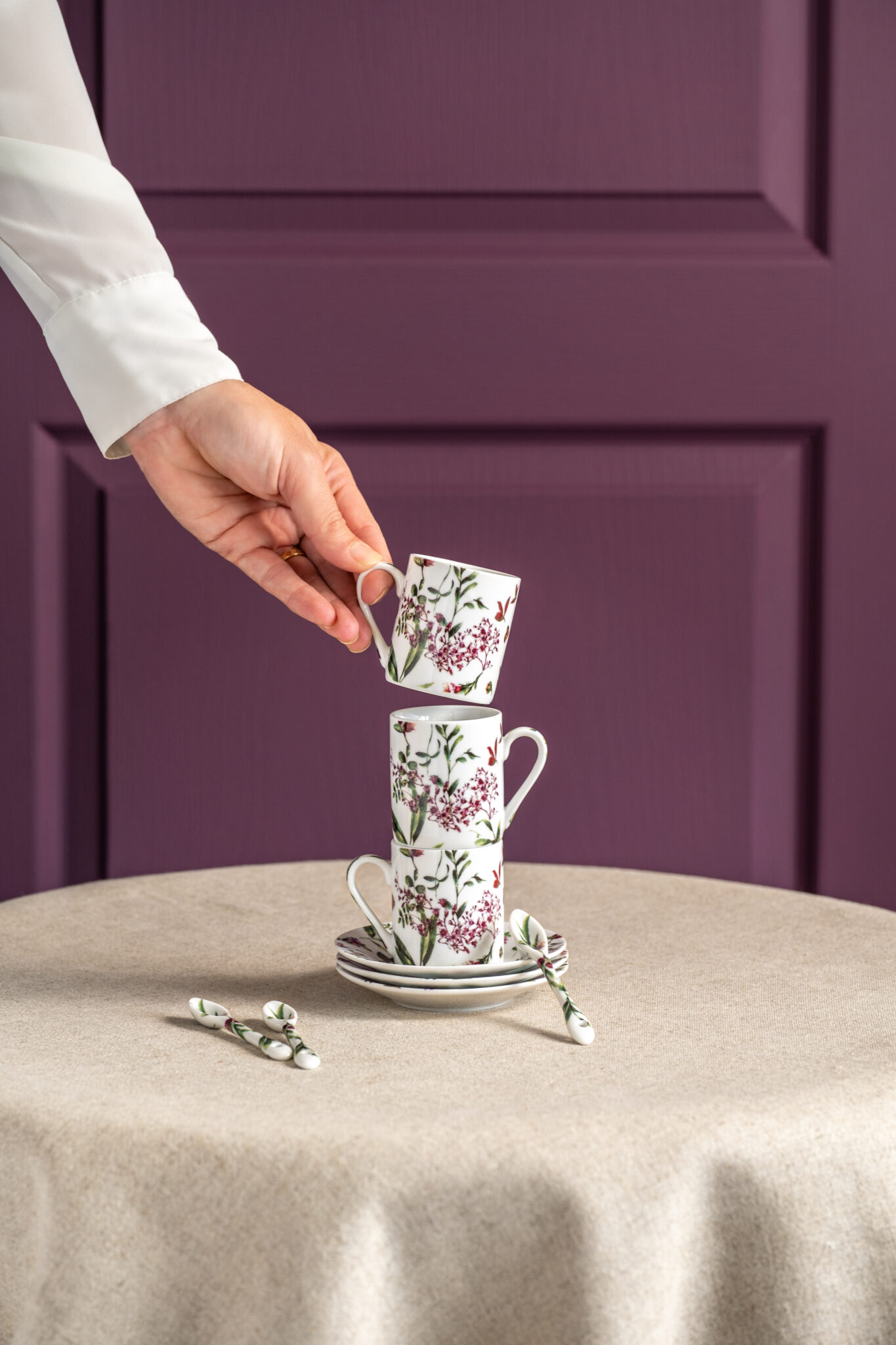 Ornées de motifs floraux délicats qui évoquent les prairies en fleurs et les promenades champêtres, ce design unique met en valeur la beauté des détails et s’adapte à toutes les occasions, du brunch dominical au dîner raffiné.