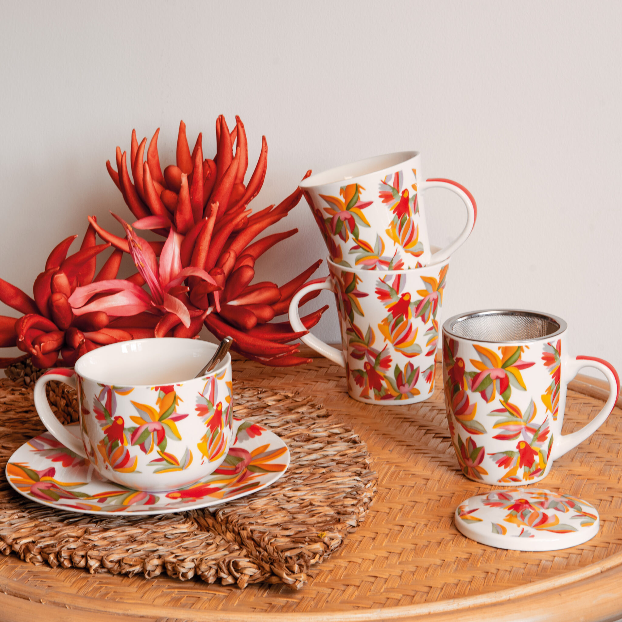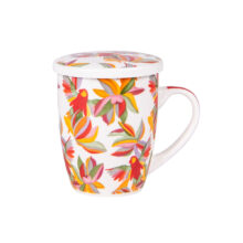 Cette collection inclut des tasses déjeuners, des tisanières, et des mugs.