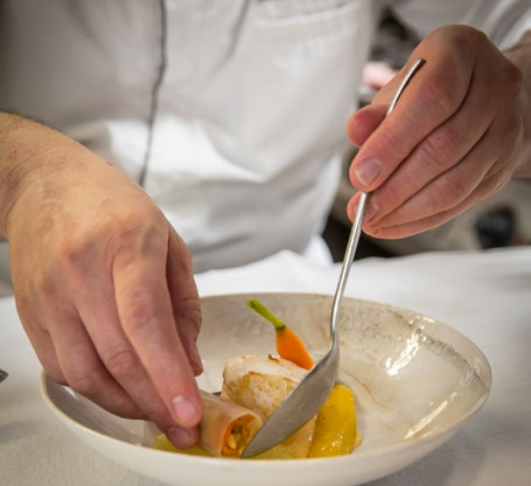 Le contenant et l’architecture du plat doivent s’harmoniser, se répondre, se conjuguer et le visuel de l’assiette fait partie intégrante de l’expérience sensorielle du client.